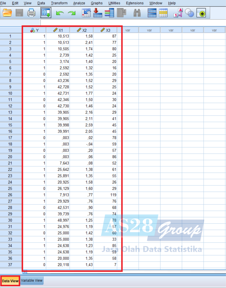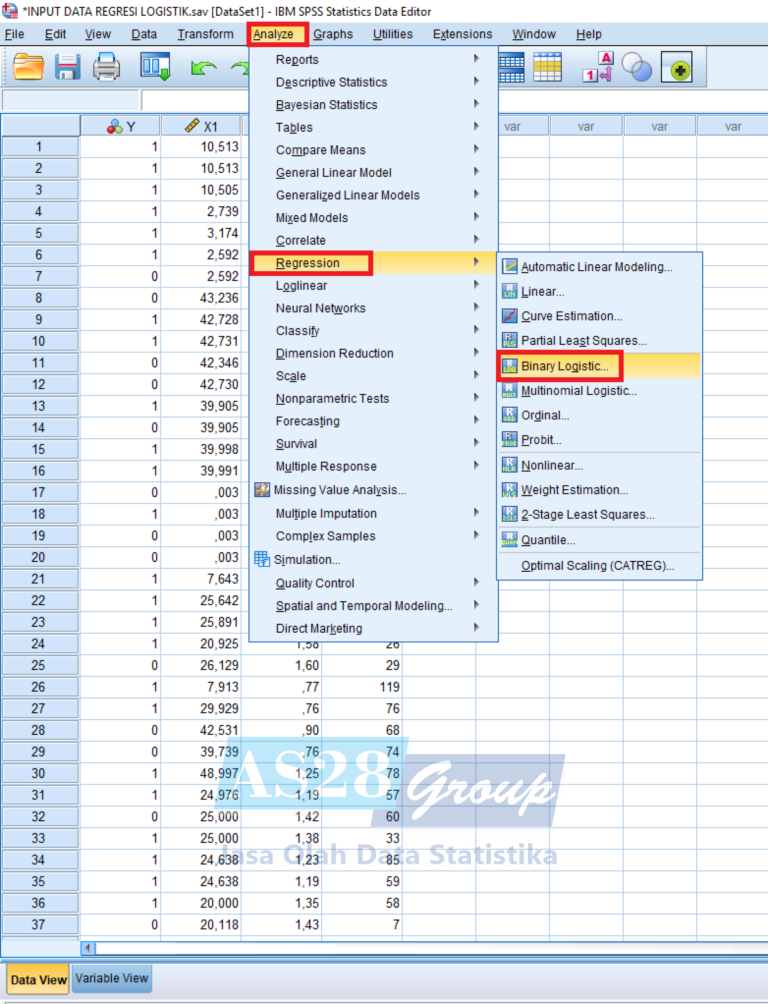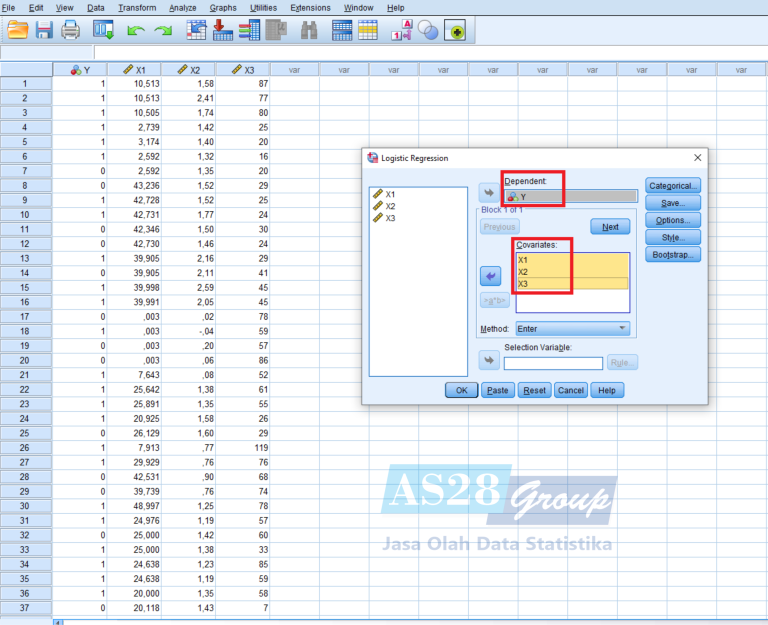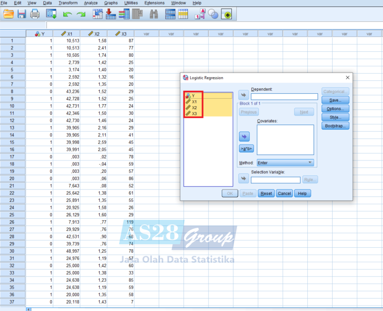 Regresi logistik biner adalah metode analisis statistik yang digunakan untuk mengevaluasi pengaruh antara variabel dependen biner dan satu atau lebih variabel independen. Variabel dependen biner adalah variabel yang hanya memiliki dua kemungkinan nilai, seperti “ya” atau “tidak”, “benar” atau “salah”, atau “sukses” atau “gagal”. Variabel independen, di sisi lain, adalah variabel yang digunakan untuk memprediksi nilai dari variabel dependen.