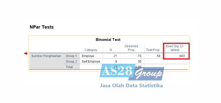 Keluar Output SPSS untuk Uji Binomial :