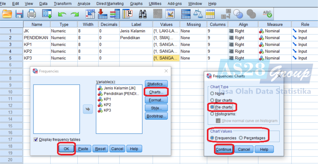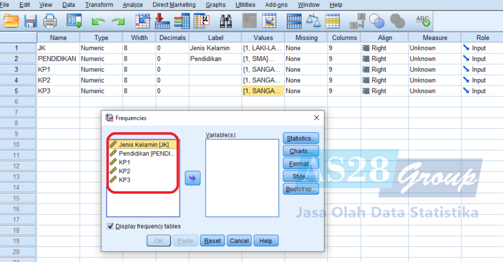 Uji distribusi frekuensi dengan spss biasanya untuk menganalisis data penelitian, entah itu berupa karakteristik responden ataupun hasil penyebaran angket kuesiner, yang mana akan memberikan sutu informasi kepada pihak peneliti.
