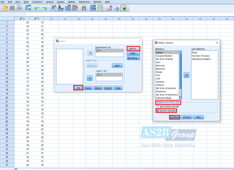 Selanjutnya pilih Options – Ceklis Test For Linearity – Continue dan OK