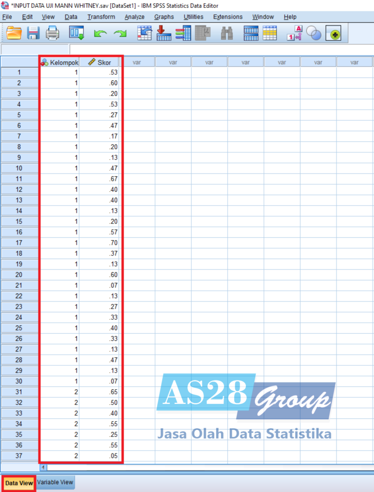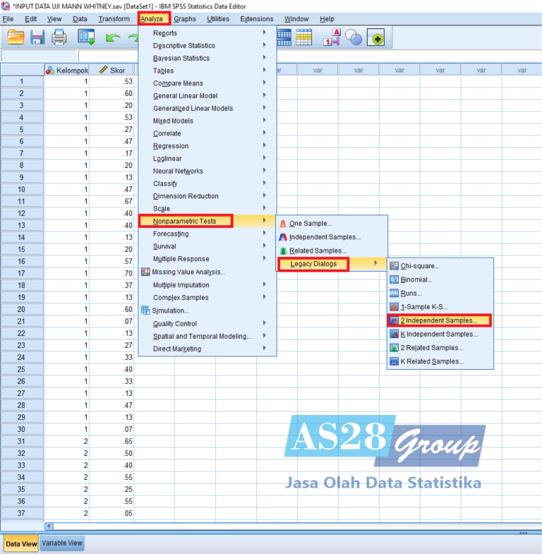 BERIKUT CARA UJI MANN WHITNEY DI SPSS: