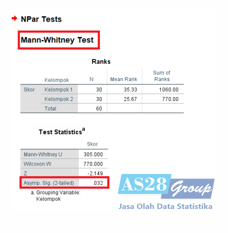 3. Membutuhkan Ukuran Sampel yang Cukup Besar: Uji Mann-Whitney dapat memberikan hasil yang lebih akurat dengan ukuran sampel yang cukup besar. Dalam kasus sampel kecil, kekuatan statistik uji dapat berkurang, sehingga dapat sulit untuk mendeteksi perbedaan yang signifikan.